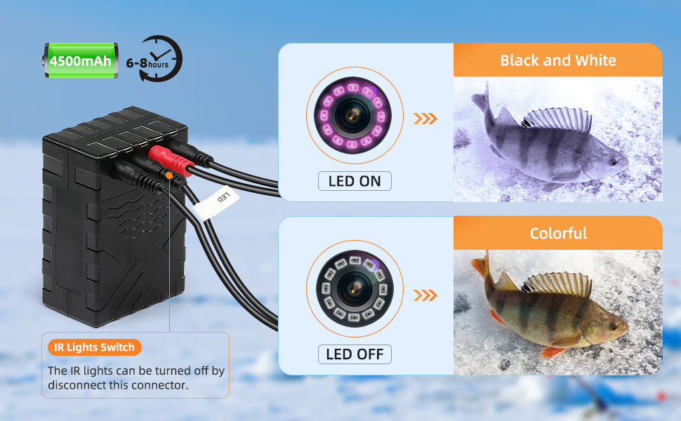 【With 12pcs Infrared Lights】: With 12pcs IR lights, fishes will be seen more clearly in the dark environment. Please note: the image will turn to black and white if you open the infrared light.