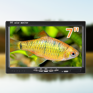 【7" Color LCD Monitor】:This underwater video fishing camera has a 7 inch large TFT color screen with 800*480 Pixels and removable sun-visor ideal for bright environments.