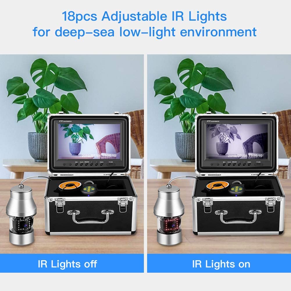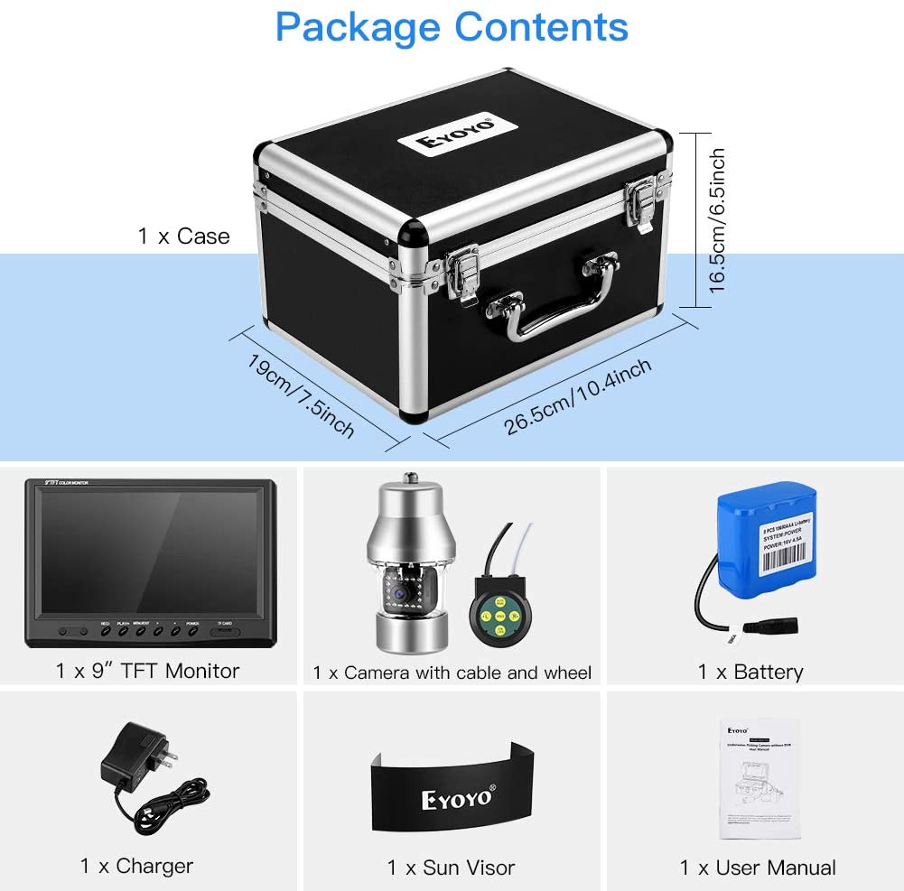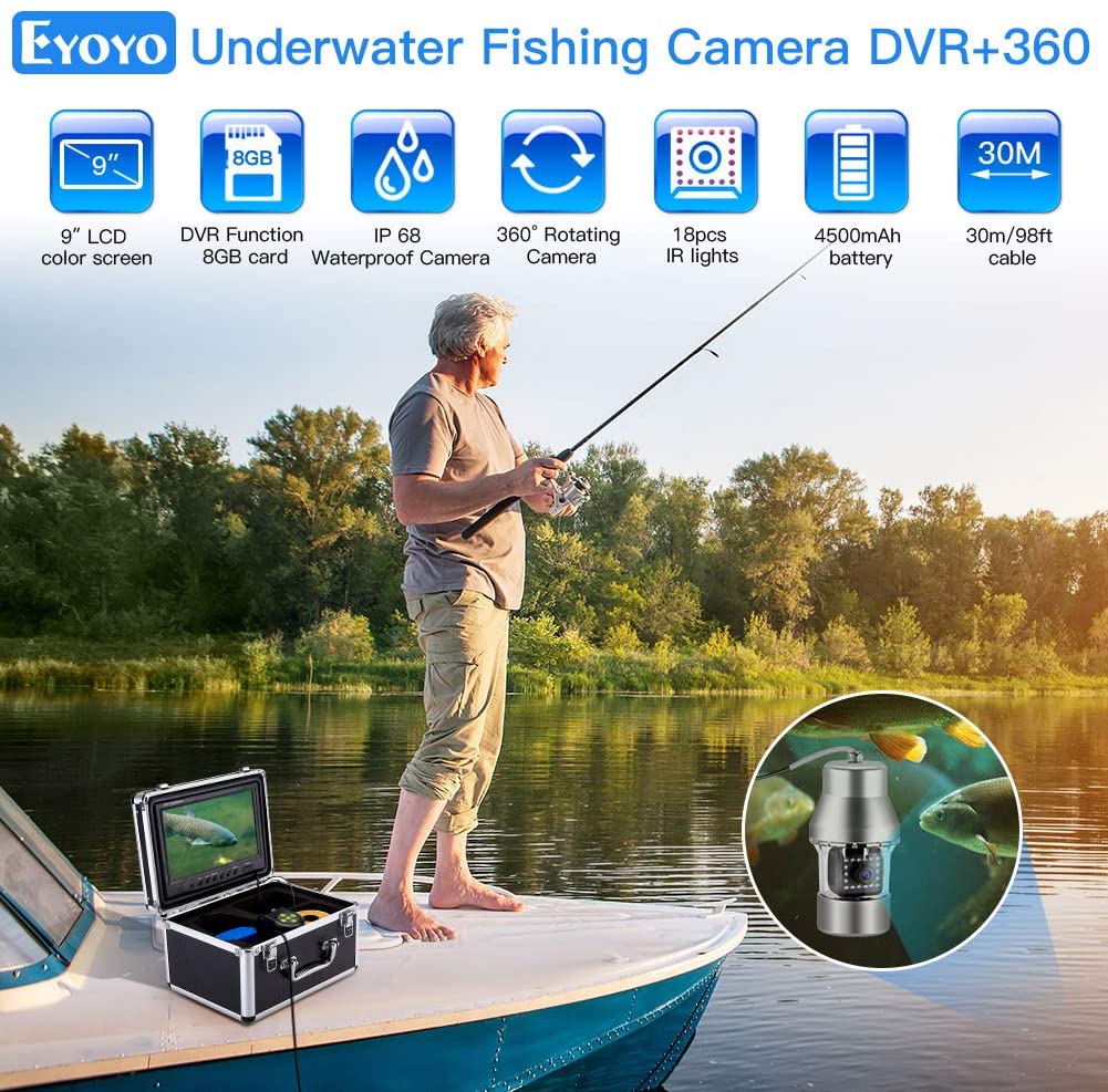 Eyoyo 9 inch Underwater Fishing Camera 360° Horizontal 1000TVL 18 Infrared IR Lights 30M Cable