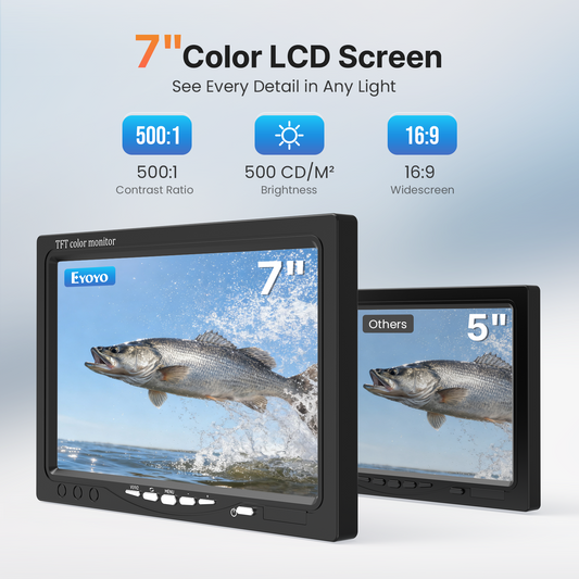 Eyoyo Underwater Fishing Camera 7 inch Color Screen 1000TVL Waterproof IR Camera for Lake Boat Sea Ice Fishing (7" 15m)