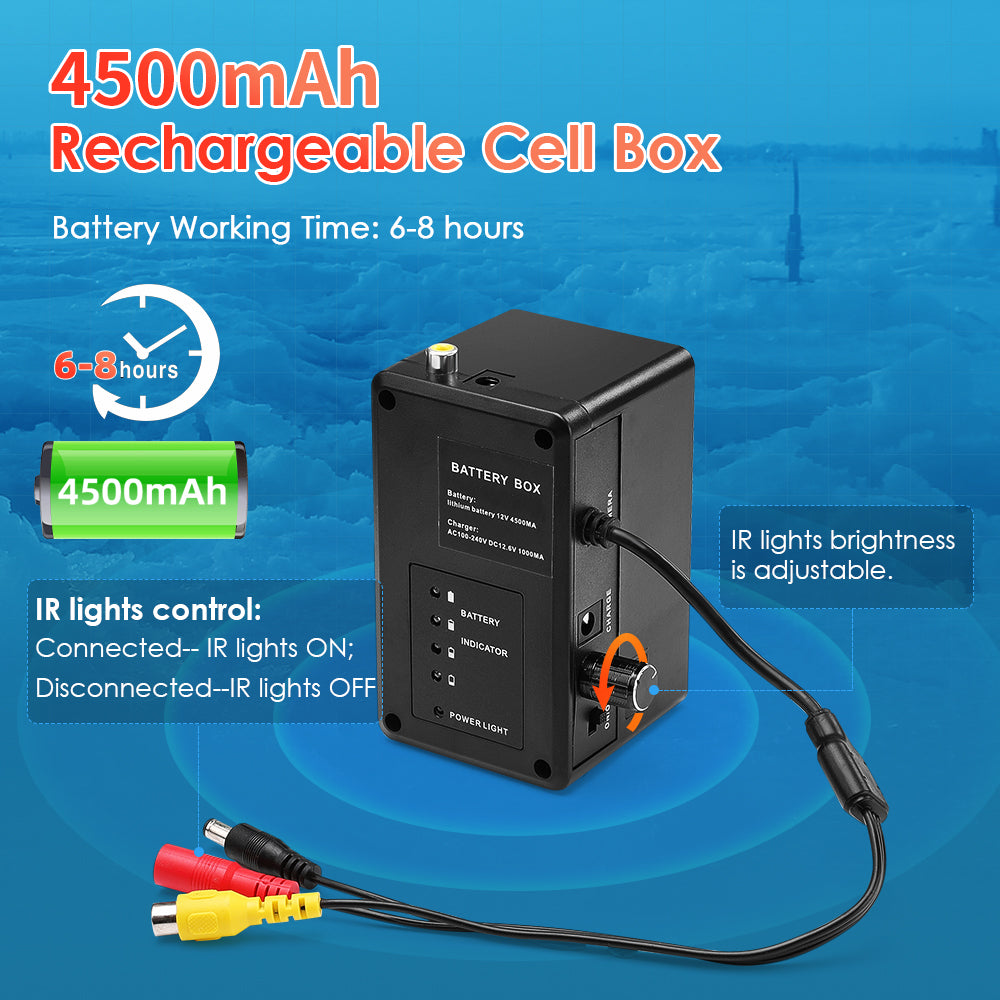 Rechargeable battery box for underwater camera 9 inch 720p fishing camera