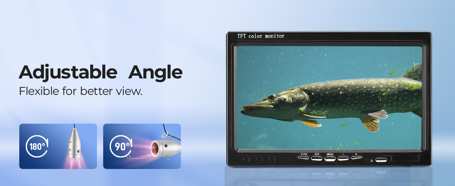Eyoyo fishing camera offers an adjustable viewing angle with both horizontal (90 degrees) and vertical (180 degrees) flexibility. Perfect for capturing every angle of your underwater world!