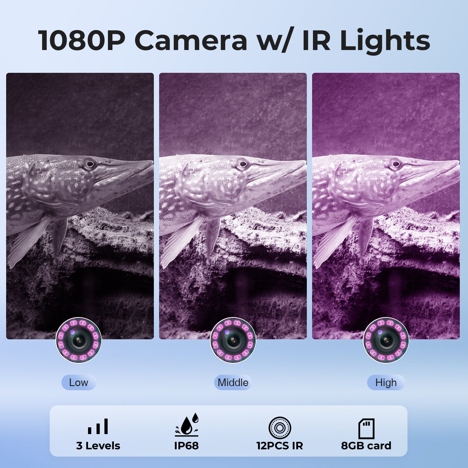 Experience the clarity of our ice fishing camera with stunning 1080p video resolution. Every underwater moment, crystal clear!