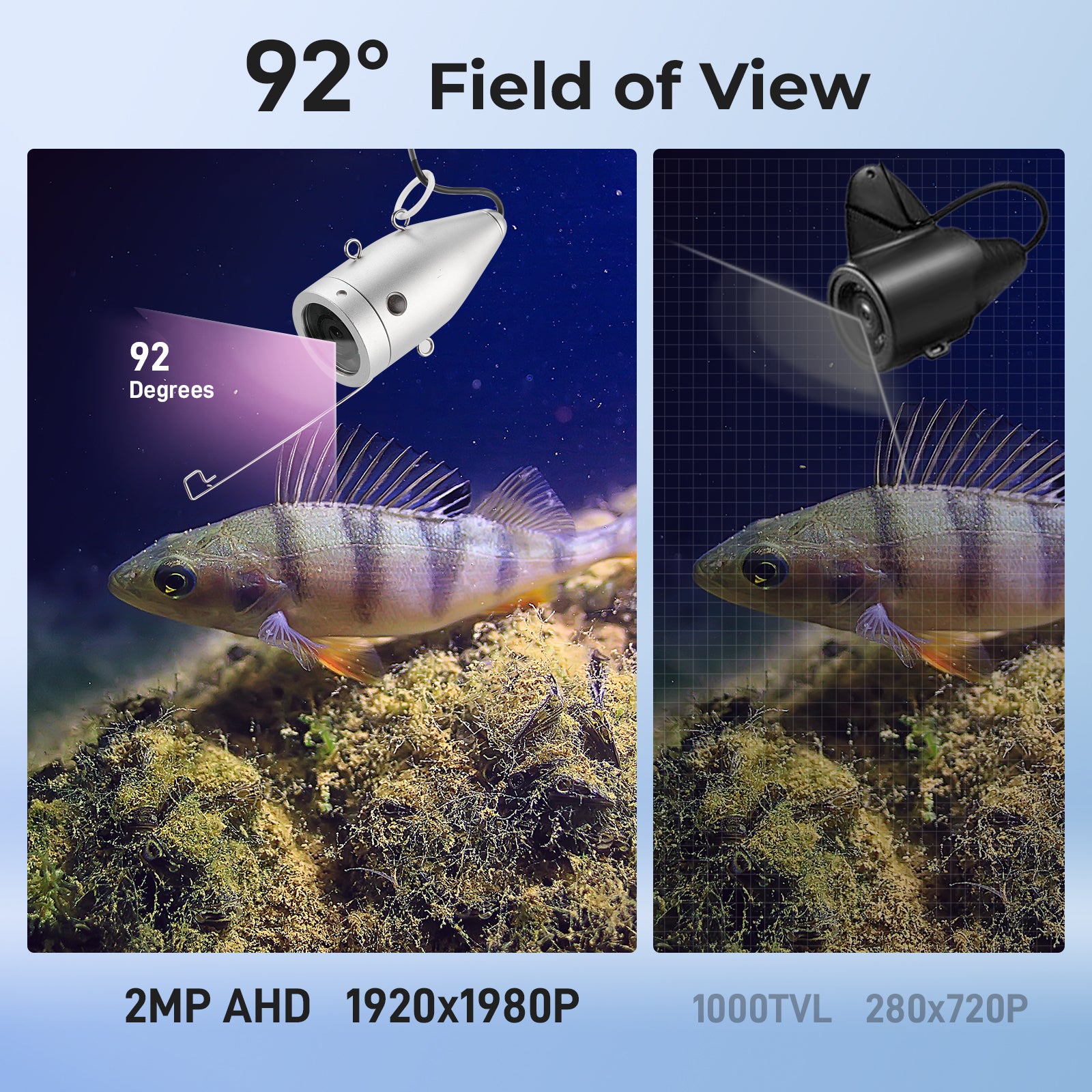 Explore the depths with precision! Our fishcam boasts a 92-degree camera viewing angle, capturing every underwater detail with accuracy. Dive into the ultimate fishing experience!