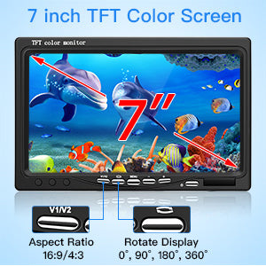 Eyoyo Underwater Fishing Camera 7 inch Color Screen 1000TVL Waterproof IR Camera for Lake Boat Sea Ice Fishing (7" 15m)