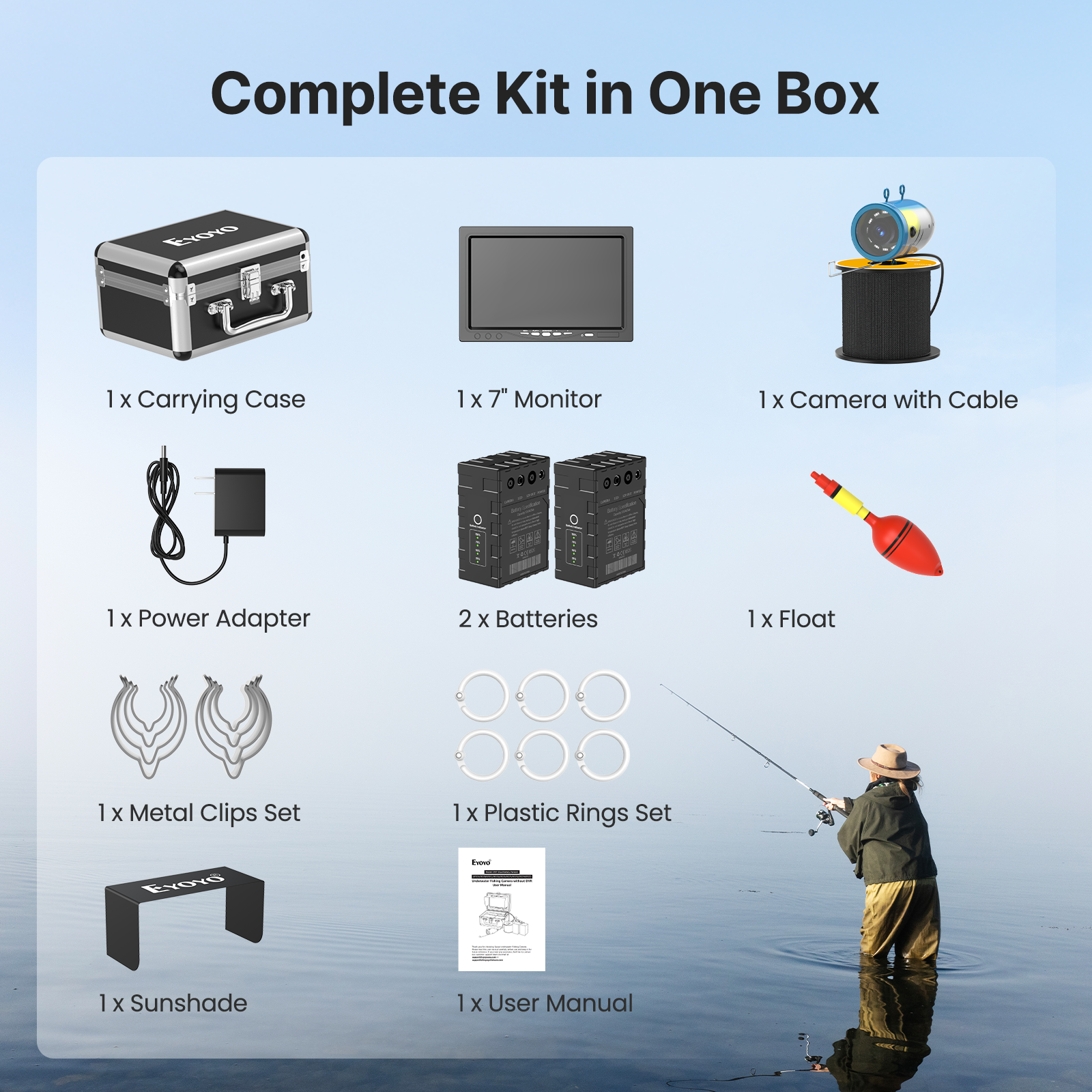 Eyoyo Underwater Fishing Camera 7 Inch: Ice Fishing Camera with 2 Batteries, Portable Fish Finder Waterproof 1000TVL Fishing Camera 12pcs Infrared Lights 15m Cable for Lake, Boat, Ice Fishing